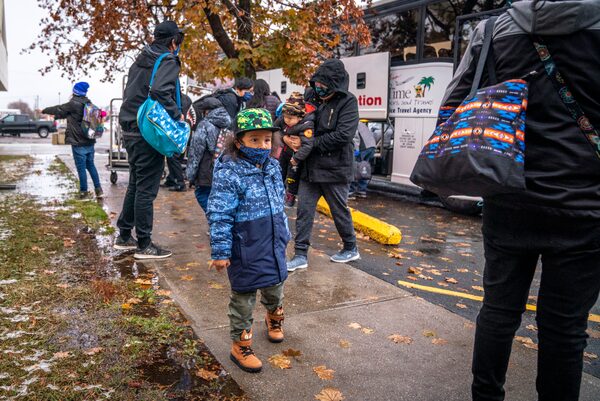 On October 21, 2020, a little more than one year after their last evacuation due to a water crisis, six-year-old Drayden Sugarhead waits by the airport shuttle bus at his family’s accommodations while evacuated from their home community of Neskantaga First Nations, located approximately 450km northeast of Thunder Bay, Ont.DAVID JACKSON/The Globe and Mail