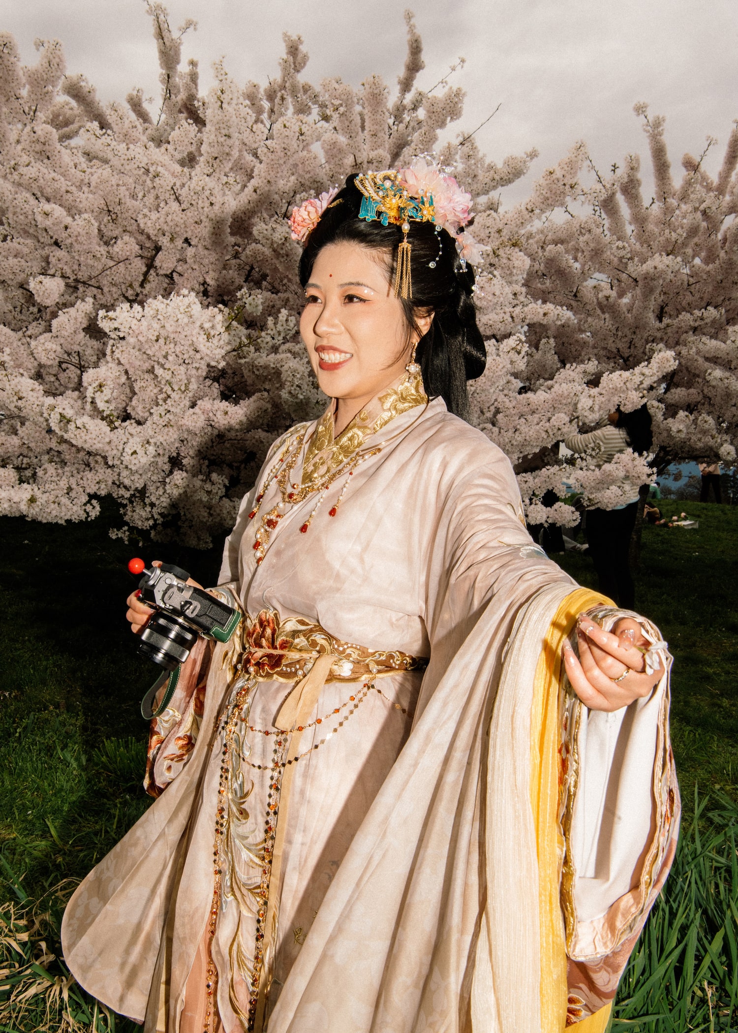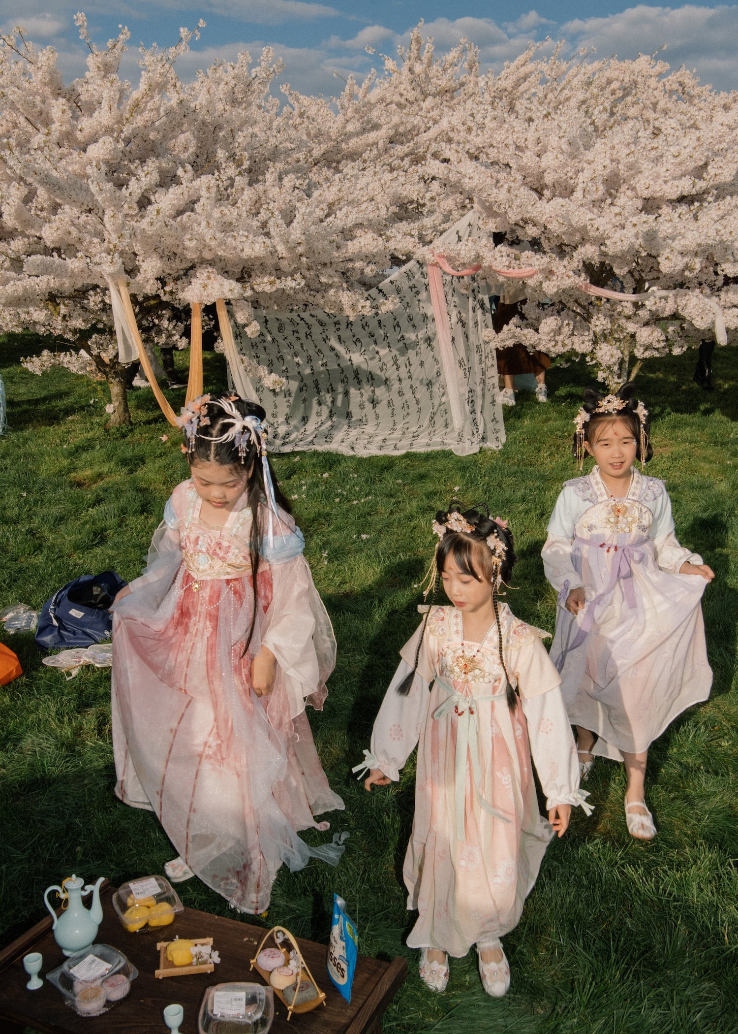 Last Sunday, families picnicked among the park’s sakura grove. Several women came in silky, flowing hanfu gowns, whose design dates to Beijing’s imperial era. A group of punks wore their hair freshly dyed – pink, purple and orange. A surprising number of cats had come to enjoy the springtime rite.