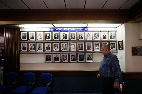 Ronn Anderson walks past a gallery of past presidents at St. James Branch No. 4.JOHN WOODS/The Canadian Press