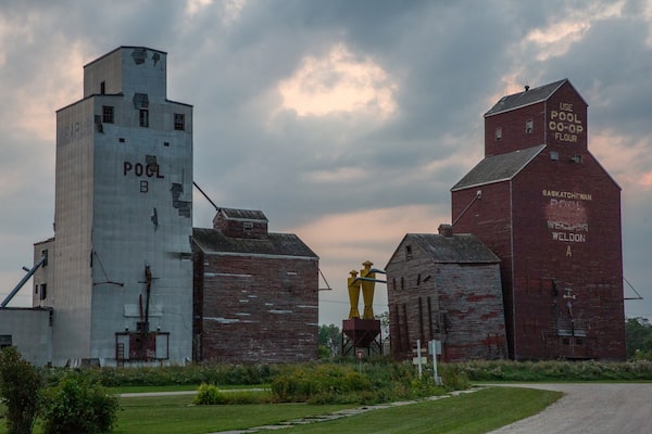 Grain silos in Weldon on Sept. 5. The manhunt here and in James Smith Cree Nation has raised tensions in communities still trying to process the loss of their loved ones.Sara Hylton/The Globe and Mail