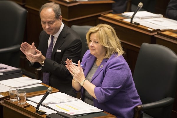 Ontario Education Minister Lisa Thompson, seen here on March 26, 2019, said in a statement Friday that teacher salaries and benefits have increased while students fall behind in subjects such as math.Chris Young/The Canadian Press