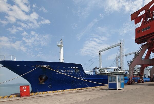 The Chinese vessel Lu Rong Yuan Yu 177, a refrigeration ship, docks in Shidao Port in China after transshipping catch from the Chinese squid-fishing ship called the Zhen Fa 7.