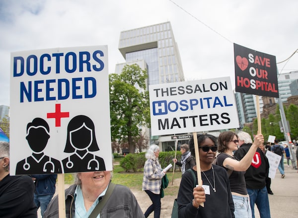 Protests at Queen’s Park in May urged the Ontario government to do something about ERs in Thessalon, Chesley and other communities along the Great Lakes.Fred Lum/The Globe and Mail