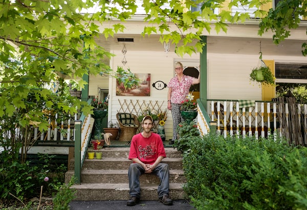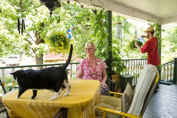 Dianne McDonald stands on the veranda of her home in Middleton, N.S., with home-share tenant Nick Acker, who helps with chores and general maintenance in exchange for a reduced rent.Darren Calabrese/The Globe and Mail