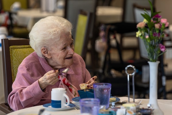 The Rudermans have lunch together with Sophie Krausz at Baycrest Terraces. The retirement home's dining room was redesigned a few years ago to give residents more choice in where (and with whom) they sit, and whether they need assistance or not.Tuan Minh Nguyen/The Globe and Mail