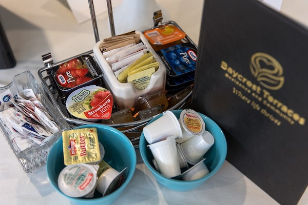 Condiments are arranged beside a menu at the Baycrest dining room.Tuan Minh Nguyen/The Globe and Mail