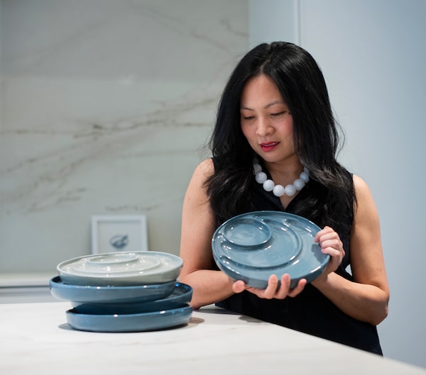 Ranee Lee holds the senior-friendly plates she made with industrial designer Amanda Huynh.Fred Lum/The Globe and Mail