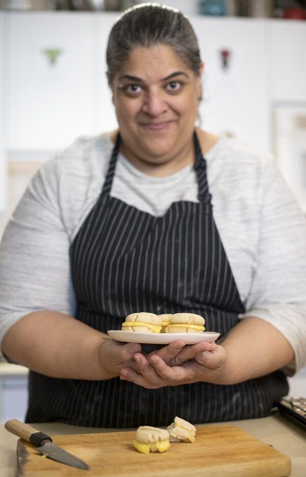 Chef Joshna Maharaj prepares a batch of mango shortbread sandwich cookies. She works with institutions to redesign their food services, including hospitals, where she learned a lot about making meals more accessible to elderly people.Fred Lum/The Globe and Mail