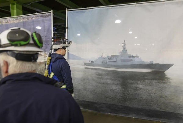 Shipbuilders look at Lockheed Martin Canada's design of 15 new Canadian Surface Combatants to be built at Irving Shipbuilding's Halifax shipyard in Halifax on Feb. 8, 2019.The Canadian Press