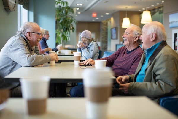 Manley McLachlan, left, meets up weekly for coffee with Dan Perrins and John Treleavan, right.