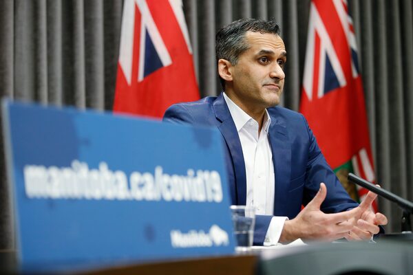 Dr. Jazz Atwal, Manitoba deputy chief provincial public health officer, speaks at a press conference at the Manitoba legislature in Winnipeg on March 5, 2020. Atwal says eligibility for the new COVID-19 vaccine will be expanded to all adults in a few weeks as more shipments arrive.JOHN WOODS/The Canadian Press