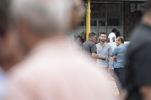 The man at middle, standing with Mr. Papathanasakis, confronted The Globe and Mail's photographer on Sept. 18 and demanded he delete his photos.Christopher Katsarov/The Globe and Mail