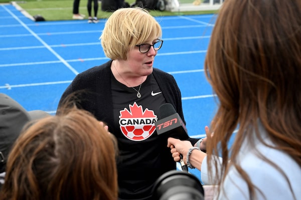 Canada's Sports Minister Carla Qualtrough speaks to media at the Lakeside Stadium in Melbourne on July 30, on the eve of the Women's World Cup football match between Canada and Australia.WILLIAM WEST/AFP/Getty Images
