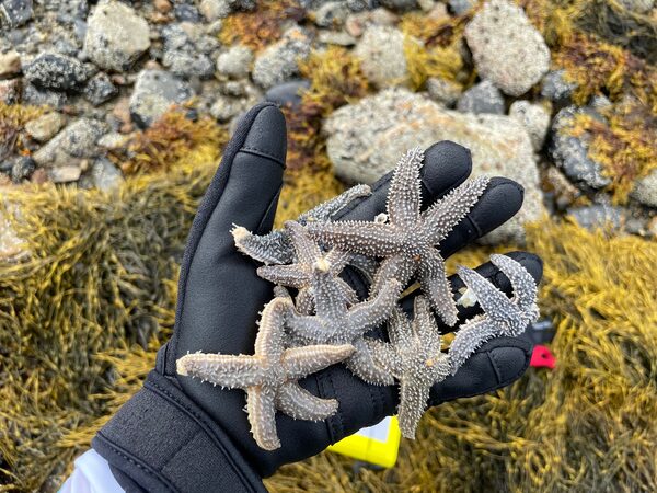 A handful of sea stars at Acadia National Park in Maine in July, 2021. Two species of sea stars are vigorously crossbreeding in a hybrid zone from Nova Scotia to Cape Cod, recent science published in Molecular Ecology has confirmed.Eliot Dudik/Supplied