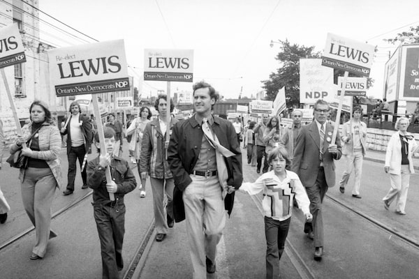 Mr. Lewis leads a group of NDP election candidates in annual Labour Day Parade in Toronto in 1975.John McNeill/The Globe and Mail