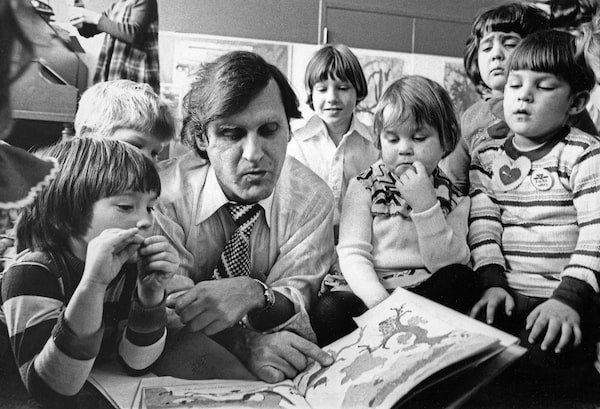 Mr. Lewis, then the leader of the Ontario New Democratic Party, reads a story to children at the Centennial College daycare centre in 1977.Dennis Robinson/The Globe and Mail
