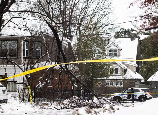 Police block off a section of road after a tree branch broke off near a home in Ottawa during a major storm on Dec. 23.Justin Tang/The Canadian Press