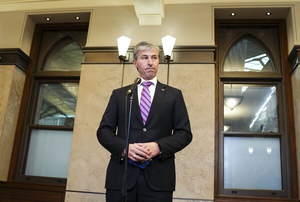 Nova Scotia Premier Tim Houston speaks to reporters following a meeting with Prime Minister Justin Trudeau on Parliament Hill in Ottawa on Nov. 22, 2021.Sean Kilpatrick/The Canadian Press