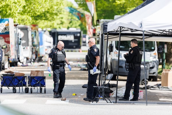 Police photograph and collect evidence from the scene of a vehicle attack at a Filipino cultural festival in Vancouver on April 27.Jesse Winter/The Globe and Mail