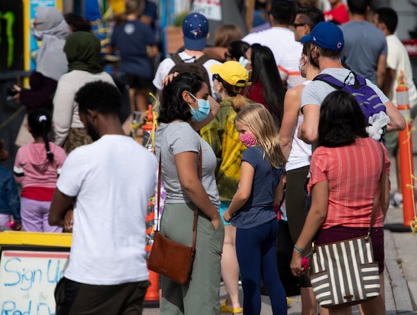 People line up to rent canoes and kayaks at Dows Lake in Ottawa on the Labour Day long weekend on Sept. 6, 2020, in the midst of the COVID-19 pandemic.Justin Tang/The Canadian Press