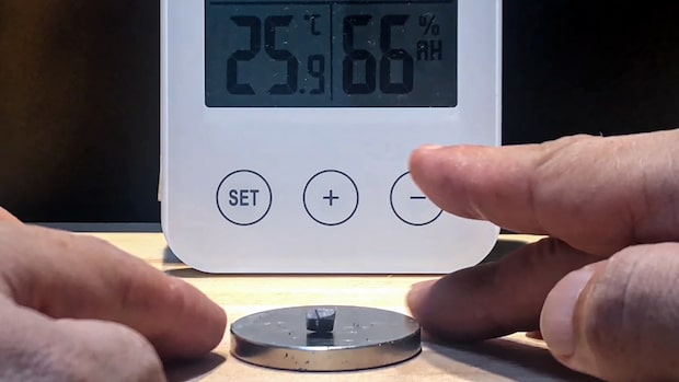 A small piece of LK-99 hovers over a magnet. Researchers quickly disproved its creators’ claims that the substance was a room-temperature superconductor.