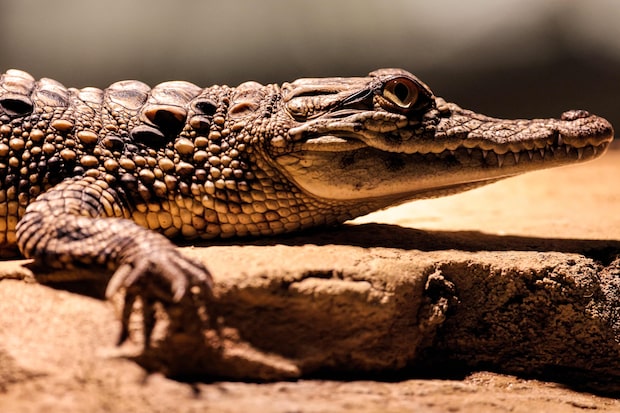 A juvenile crocodile basks at the Dubai Crocodile Park. Research in Morocco found the reptiles took a keen interest in the cries of human infants.