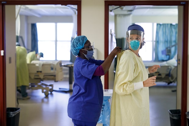 A nurse gets gowned up in Toronto Western Hospital's COVID-19 ward in October, 2020. Since the early months of the pandemic, the coronavirus has infected a large share of Canada's population.