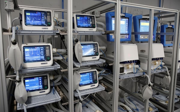 Ventilators are seen at a plant in Switzerland March 18, 2020.ARND WIEGMANN/Reuters