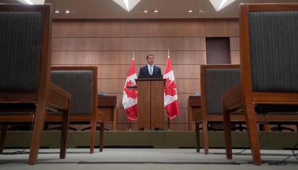 Leader of the Opposition Andrew Scheer speaks during a news conference on the COVID-19 virus in Ottawa, Tuesday, March 24, 2020.Adrian Wyld/The Canadian Press