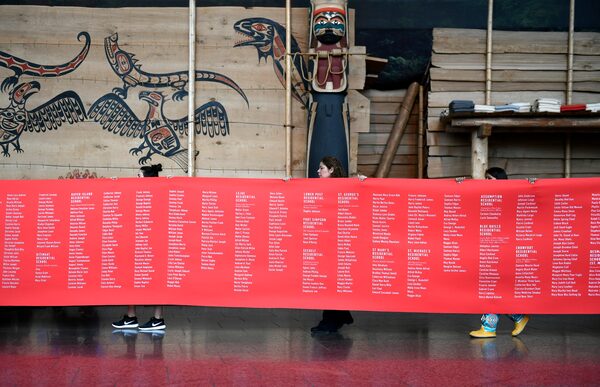 A 50-metre-long cloth with the names of Indigenous children who died within Canada’s residential school system was unveiled Monday during a ceremony in Gatineau at the Canadian Museum of History.