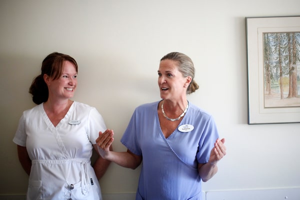 Health-care aides Katherine Graham, right, and Jacquie Green talk in Ian Jordan's room at Glengarry Hospital, where they were involved in his daily care.CHAD HIPOLITO/The Globe and Mail