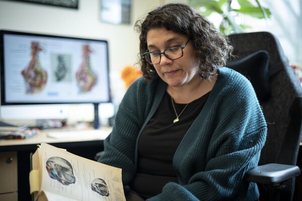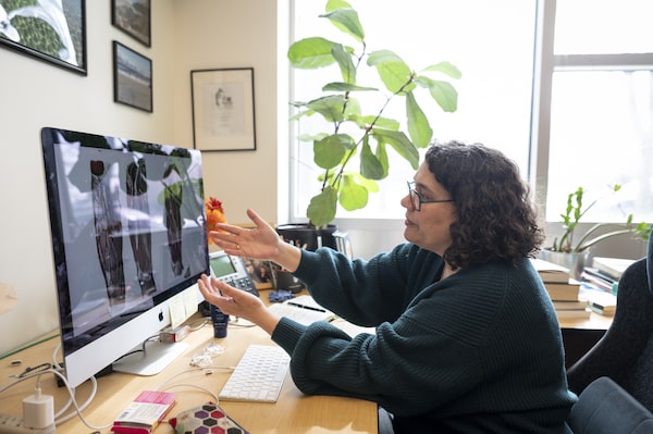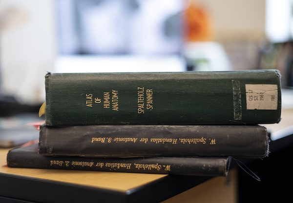 At her Vancouver office, professor Claudia Krebs looks at illustrations in a 1967 edition of an anatomy atlas originally edited by Werner Spalteholz and taken over by Rudolf Spanner. These are reproductions that appeared in the original Spalteholz atlas, and are not problematic. On her computer are examples of how anatomical images (in this case, images which do not have a Nazi history) are being reused.Photography by Tijana Martin/ The Globe and Mail