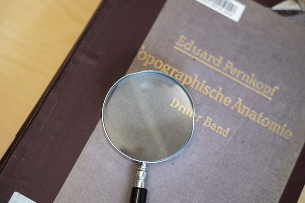 In her investigation, she also discovered copious reproductions of Pernkopf illustrations in other resources. They have been redrawn, copied, traced, flipped – and still populate important medical journals and texts. “We’re all using these images in our lectures that are traced or inspired by this Pernkopf atlas, that are not as original as we thought they were,” explains Dr. Krebs, a German professor who lives in Vancouver.
