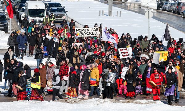 Family and supporters walk from Portage and Main to the Manitoba Legislature to protest the provincial government's delay in searching a landfill for missing Indigenous women on March 8.JOHN WOODS/The Canadian Press