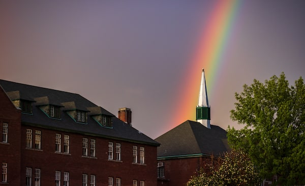 A rainbow breaks over the former Kamloops Residential School on May 23, 2022.Melissa Tait/The Globe and Mail