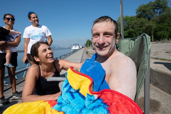 Mr. Maitinsky crosses the buoys between breakwaters off the Toronto shore. He is almost there.
