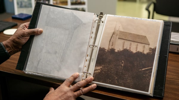 Mr. Thomas holds a picture of what the Willow Grove Baptist Church looked like before it was destroyed in a fire.Matt Brown/The Globe and Mail