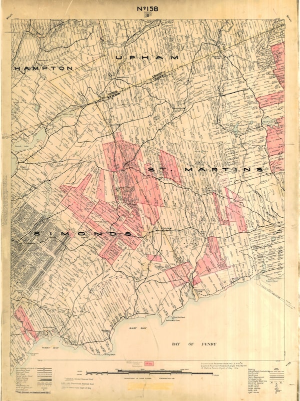 A map of Saint John shows original surveys where property was granted starting in the late 1700s. Black settlers' parcels (the dense cluster at left) were smaller than the parcels white people got.PROVINCIAL ARCHIVES OF NEW BRUNSWICK