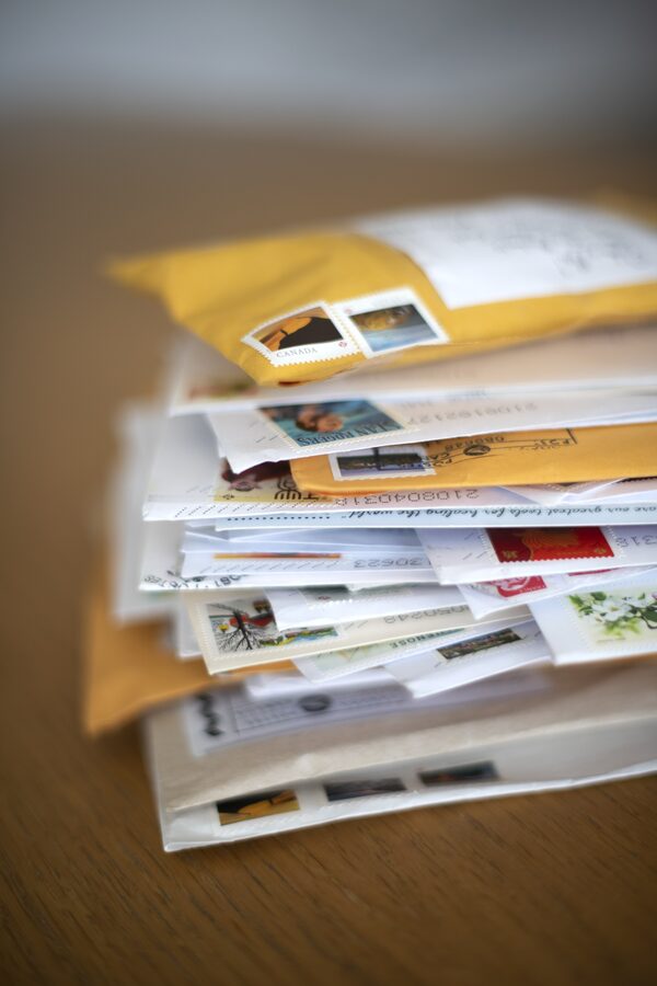 Letters sent on behalf of Michael Spavor and Michael Kovrig, two Canadians then detained in China, pile up at the Globe newsroom in 2021.Fred Lum/The Globe and Mail