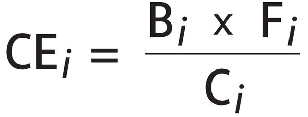 The cost effectiveness of a conservation strategy (CE) as a function of its benefits (B), feasibility (F) and cost (C).Trish McAlaster/The Globe and Mail