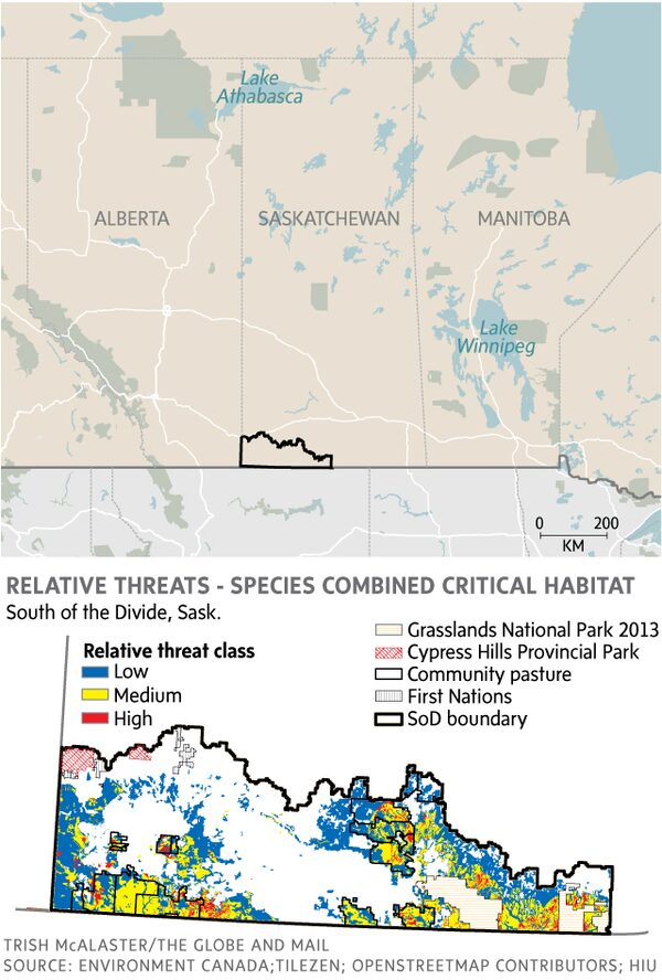 As head of conservation planning for the Canadian Wildlife Service in Saskatoon, Mr. Wayland has gained a deep appreciation for this landscape, about half of which remains wild, uncultivated prairie. And while it might strike visitors as vast and empty, the region is home to some of Canada’s most threatened species, including the swift fox, the greater sage-grouse and – one of SoD’s most photogenic residents – the burrowing owl. Hemmed in on all sides by more than a century of agricultural expansion, the SoD is their last redoubt.