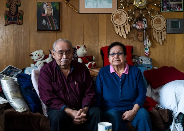 Russell and Elsie Tiljoe, seen here on Jan. 11, 2020, say on-reserve residents stand to benefit from jobs created by construction of the natural-gas pipeline.Jimmy Jeong/The Globe and Mail