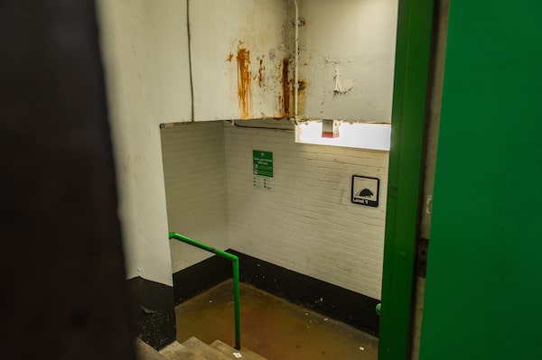 Water damage in a stairwell of the parking garage under Nathan Phillips Square. A project to improve the square after a 2007 design competition went over budget, largely because of repairs to the garage.Laura Proctor/The Globe and Mail