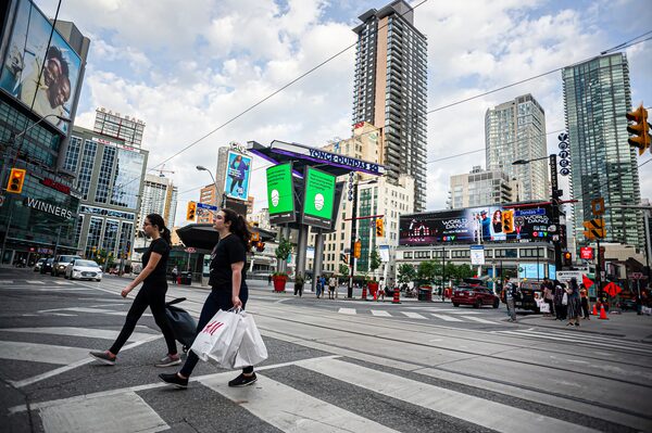 People walk through Yonge-Dundas Square in downtown Toronto in June 2020.Christopher Katsarov/The Globe and Mail