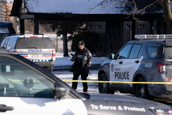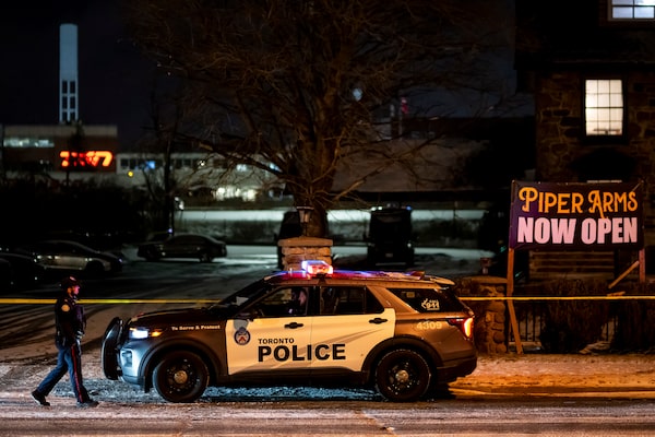 Toronto Police investigate a mass shooting at the Piper Arms Pub near the Scarborough Town Centre in Toronto on March 8.Christopher Katsarov/The Canadian Press