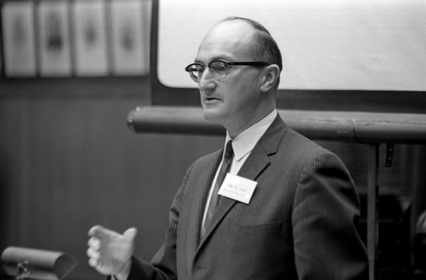 Sam Cass speaking at a traffic meeting in Toronto City Hall, on Jan. 22, 1965.Harold Robinson/The Globe and Mail