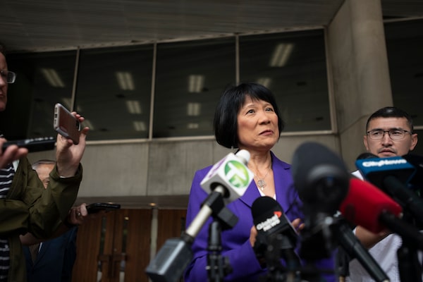 Olivia Chow holds a news conference under the windows of the mayor’s office at city hall on June 27.Fred Lum/The Globe and Mail
