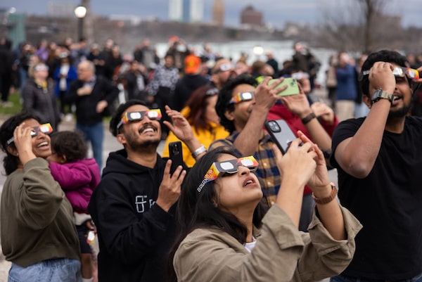 They say a total solar eclipse triggers erratic behaviour in animals. Cows scurry to barns. Birds drop from the sky. Tortoises get an urge to breed. In Niagara Falls on Monday, humans of Southern Ontario exhibited their own eclipse idiosyncrasies. People got squirrelly, then panicky, then temporarily lost their minds. They screamed, they hugged, they danced. But mostly they squinted as they tried to locate any glimpse of the sun through gunmetal-grey skies.
