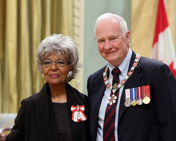 Eleanor Collins of Surrey, B.C., with Governor-General David Johnston as she was invested as Member of the Order of Canada at a ceremony at Rideau Hall in Ottawa, on Nov. 21, 2014.FRED CHARTRAND/The Canadian Press