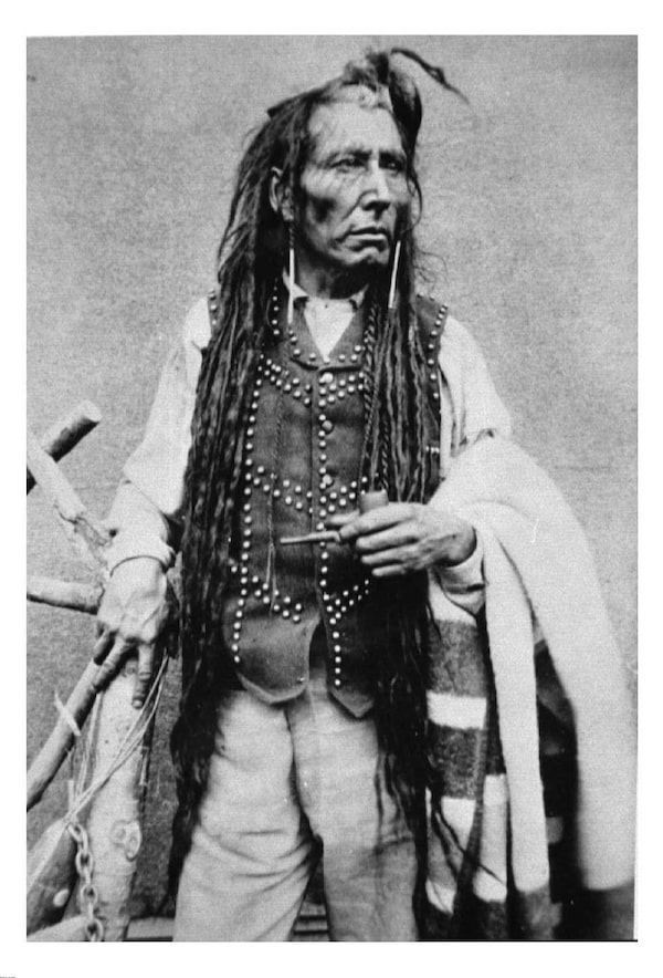 Chief Poundmaker, centre, is shown in a file photo from the 1884-1888 Northwest Rebellion. Prime Minister Justin Trudeau will visit a Saskatchewan First Nation to exonerate Poundmaker, who was unjustly convicted of treason more than 130 years ago.FREDERIC HATHEWAY PETERS/The Canadian Press